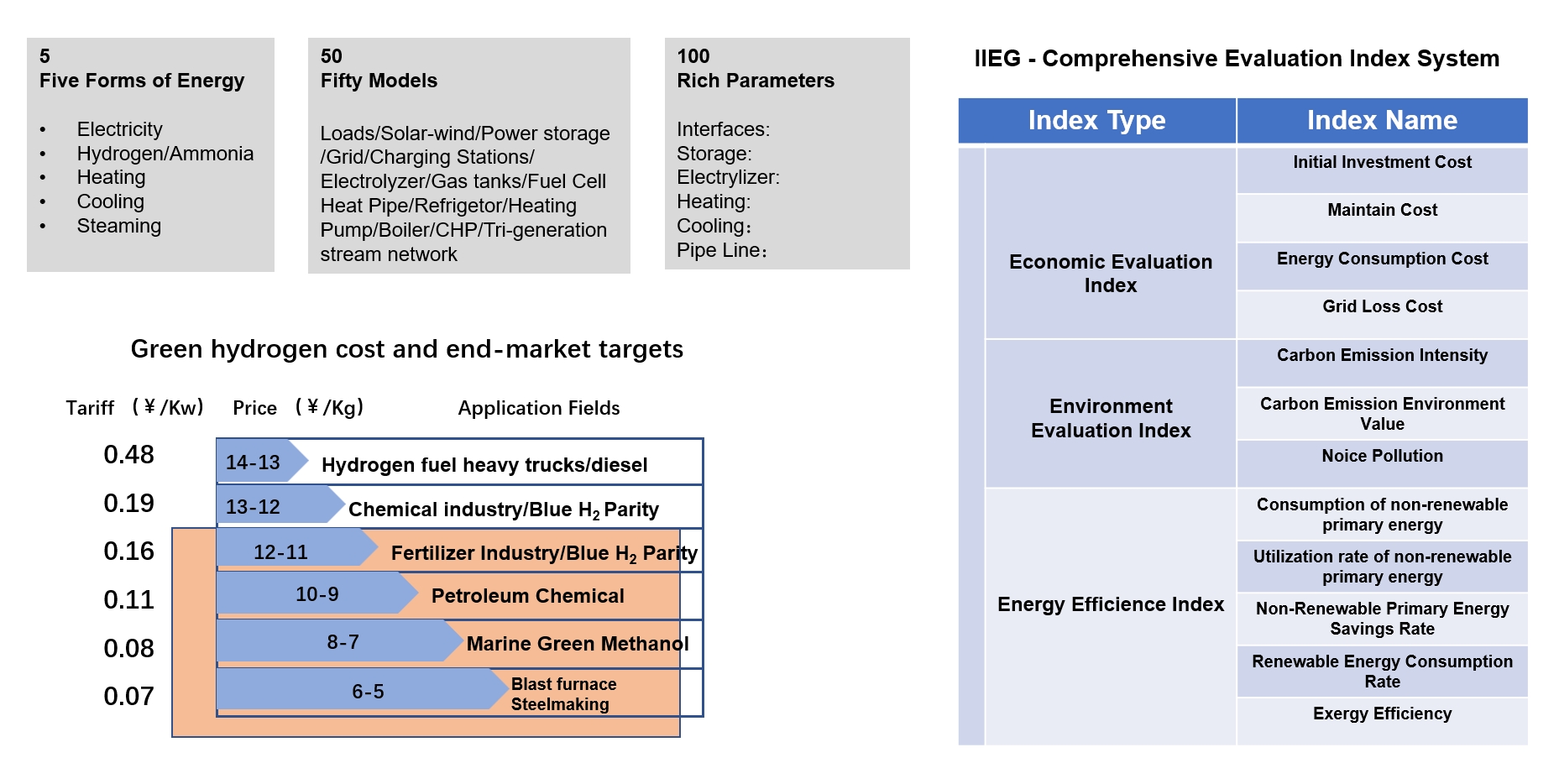 Used for inputting project boundary conditions, including time series of all loads, electricity prices, various costs (Capex), energy density, calorific value, carbon content, etc.